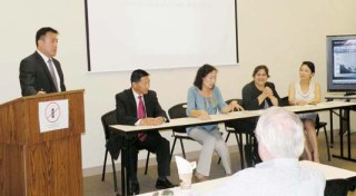 Joe Han, managing broker for Keller Williams Realty in Cupertino listens to a question before directing it to his company's panel of Asian REALTORS® (left to right) Harvey Young, Mimi Wang, Niru Pujare and Grace Pak.