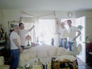 How many men does it take to put a lace curtain? “Never enough!” according to (left to right) Bob Conway, Dave Barca, Doss Welsh and Peter Kitch. In the end, the men just couldn’t figure it out without the help of the homeowner and the women RSVP volunteers!