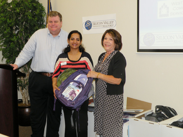 The backpacks were presented to Sujatha Venkatraman, director of Stability Support Services for West Valley Community Services, at yesterday’s Cupertino/Sunnyvale District tour meeting. The non-profit agency distributes the backpacks yearly to disadvantaged students in both communities. Venkatraman thanked SILVAR members for continuing to support the program through the years.